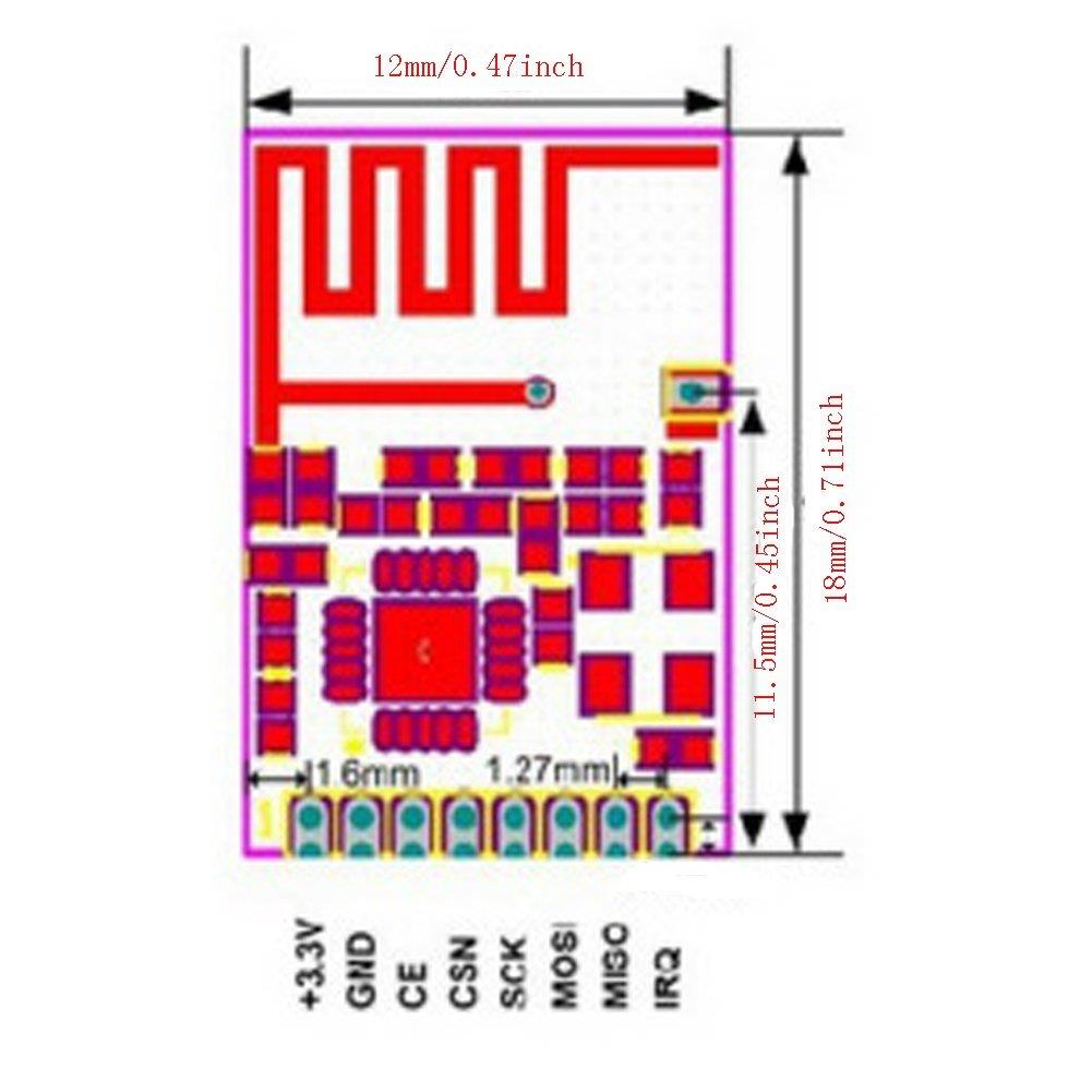Mini Board NRF24L01 SMD 1.7MM Wireless Transceiver Module Small Size 1.9-3.6V
