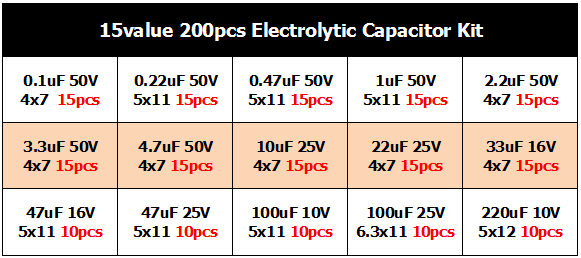 200pcs 15value Electrolytic Capacitor Assortment Box Kit