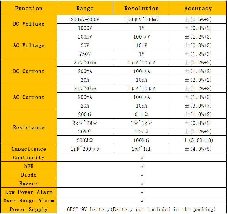 DT9205A AC/DC LCD Display Professional Multimeter