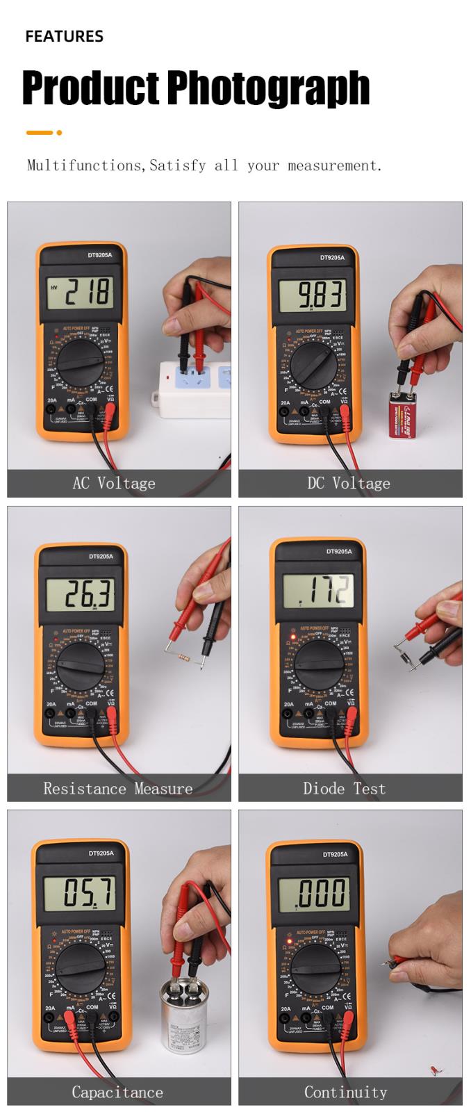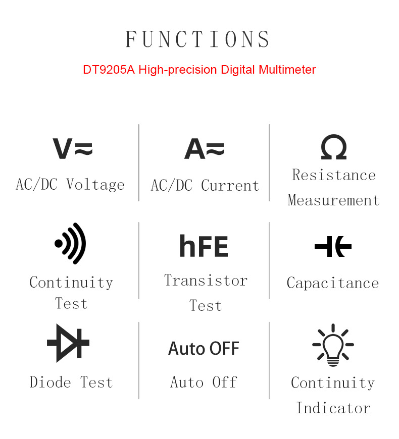 1 X DT9205A AC/DC LCD Display Professional Multimeter